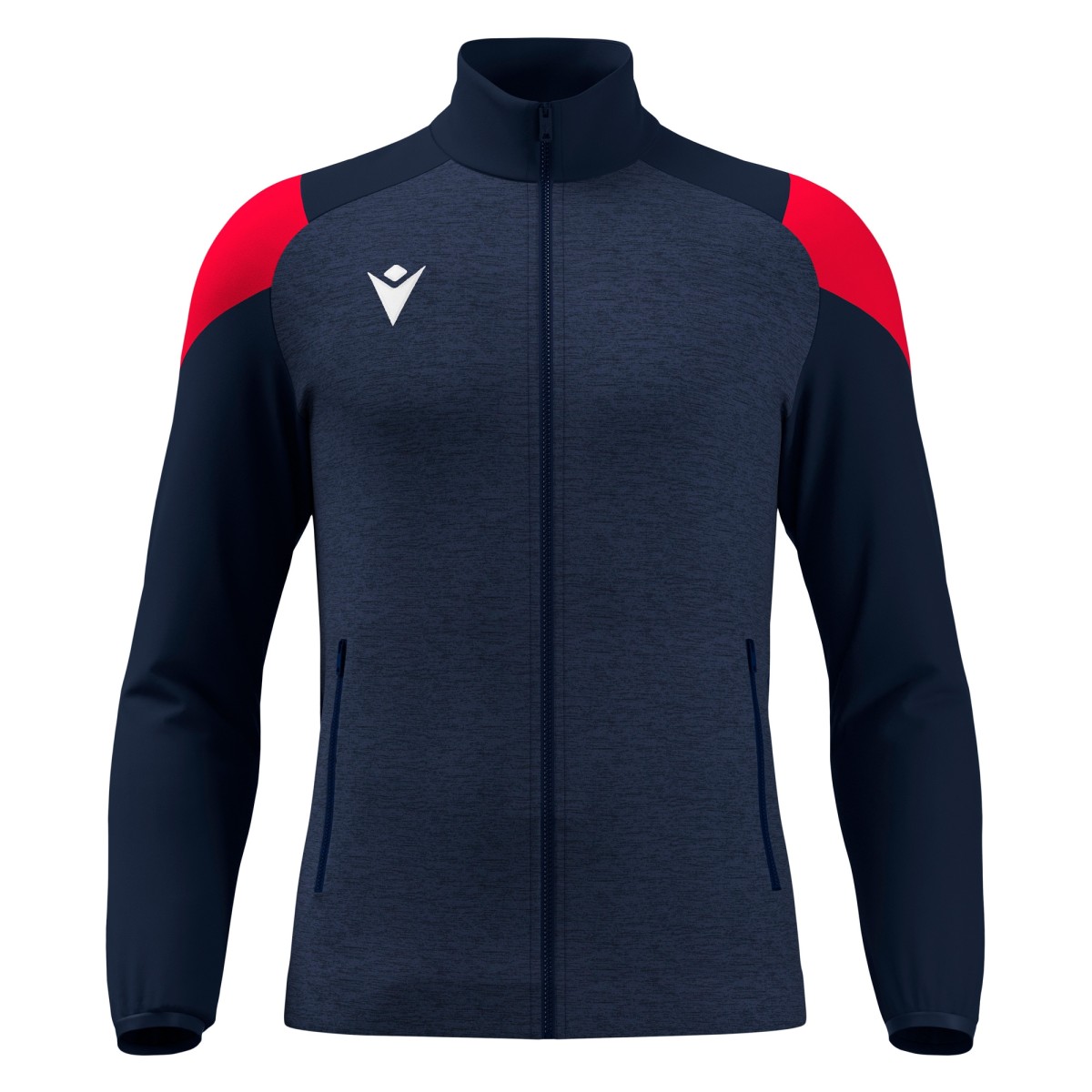 Travel Top in Confortex Fabric met een gegoten centrale rits met een full-length met een metalen ritssluiting met de Macron-held. Compleet met een melange-textuur aan de voorkant en grote zijzakken met gegoten ritssluiting. De manchetten hebben een lycra -afwerking en de achterste bodemband bevindt zich in gebreide stof. Beschikbaar in 8 kleurversies.