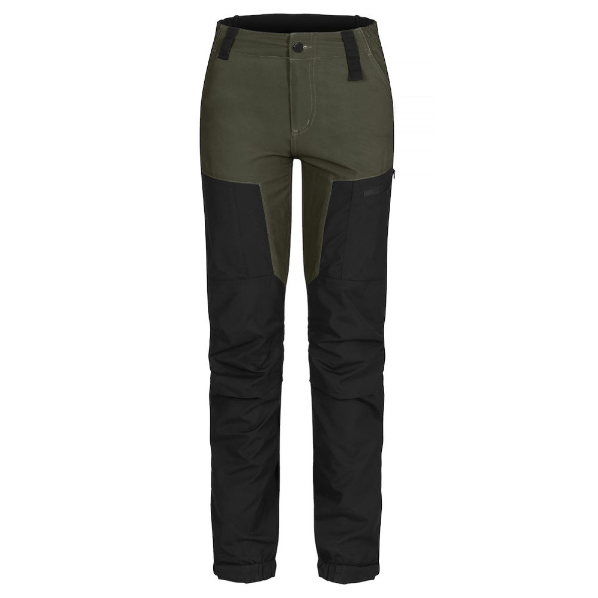 Stof 1: 65% polyester, 35% katoen. Stof 2: 88% polyester, 12% elastaan. Een moderne trekking broek van een comfortabele en ventilerende 4-way stretch kwaliteit. Met delen van hoogwaardige wind- en waterafstotende stof. Afgewerkt met elastiek in de taille en een voorgevormde knie voor verbeterde mobiliteit. Twee voorzakken, twee beenzakken met rits en één achter. De onderzijde van de broekspijp is verstelbaar met elastiek en klittenband. Met ruimte voor het invoegen van kniebeschermers.